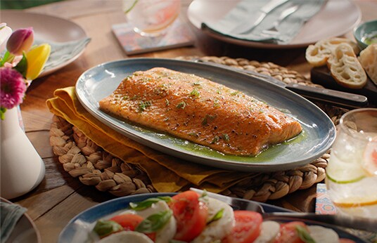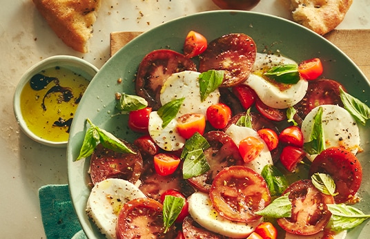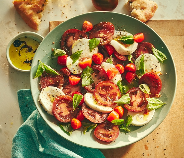 Make a caprese salad with tomato, bocconcini, and fresh basil.